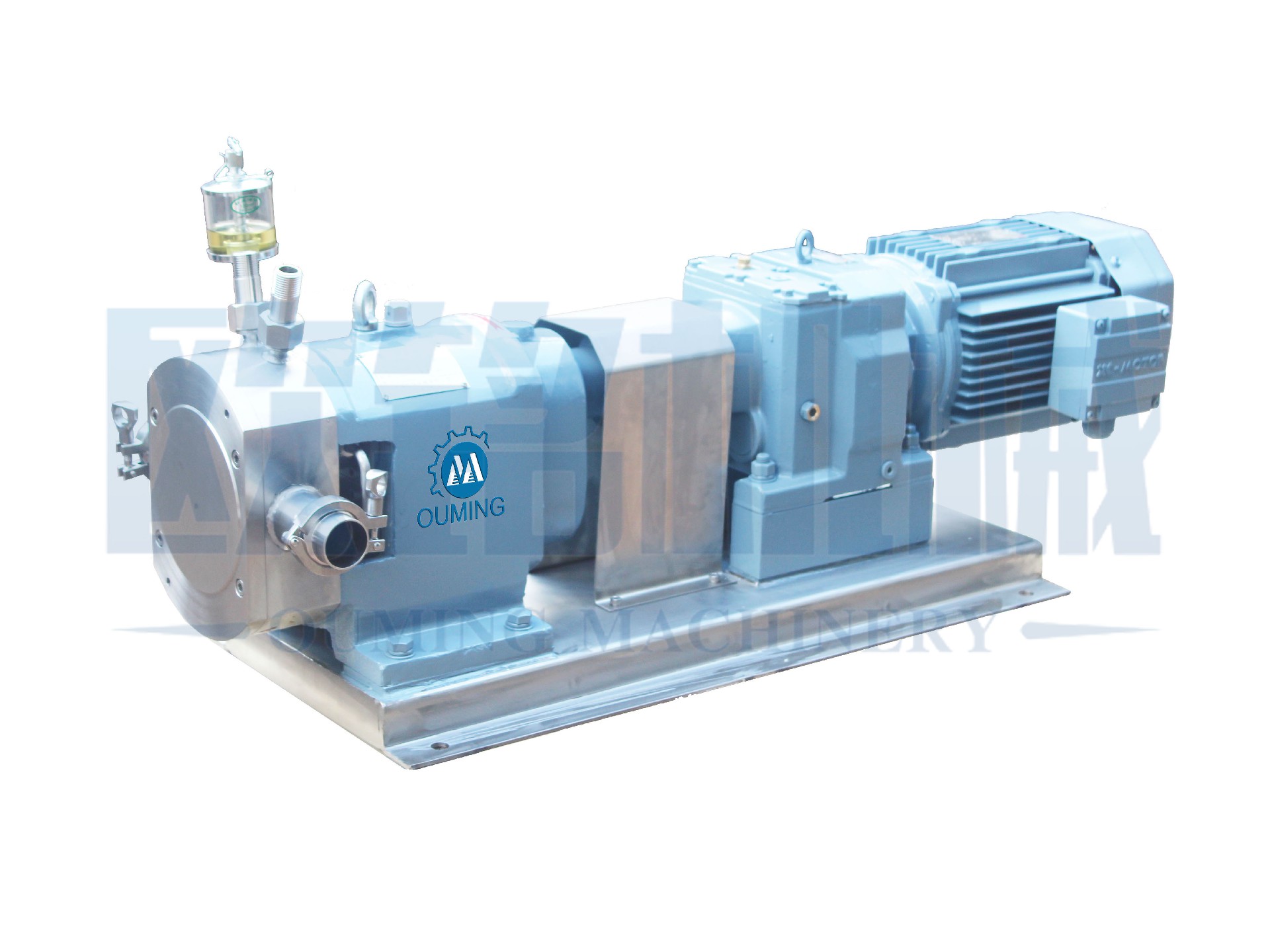 該產(chǎn)品借助于工作腔里的多個(gè)固定容積輸送單位的周期性轉(zhuǎn)化來(lái)達(dá)到輸送流體的目的。原動(dòng)機(jī)的機(jī)械能通過(guò)泵直接轉(zhuǎn)化為輸送流體的壓力能,泵的流量只取決于工作腔容積變化值以及其在單位時(shí)間內(nèi)的變化頻率,而(理論上)與排出壓力無(wú)關(guān);轉(zhuǎn)子泵依靠?jī)蓚€(gè)同步反向轉(zhuǎn)動(dòng)的轉(zhuǎn)子(轉(zhuǎn)子葉數(shù)為2-8)在旋轉(zhuǎn)過(guò)程中于進(jìn)料口處產(chǎn)生吸力(真空度),兩轉(zhuǎn)子將轉(zhuǎn)子室分隔成幾個(gè)小空間,在傳動(dòng)軸的帶動(dòng)下進(jìn)行反方向旋轉(zhuǎn),介質(zhì)即被輸送至出料口,從而產(chǎn)生了較高的排放壓力,如此往復(fù)循環(huán),特別適合中高粘度介質(zhì)的輸送。