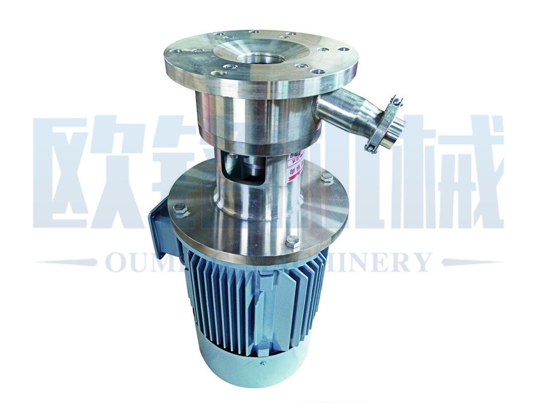 BEX釜底乳化泵是一種倒立式安裝于釜底的高剪切乳化設(shè)備,物料從主機(jī)上部與下部同時吸入,并向四周離心擠出,由于轉(zhuǎn)子高速旋轉(zhuǎn)所產(chǎn)生的高剪切線速度和高頻機(jī)械效應(yīng)帶來的強(qiáng)勁動能,使物料在定子和轉(zhuǎn)子狹窄的間隙中受到強(qiáng)烈的機(jī)械及液力剪切、離心擠壓、液層摩擦、撞擊撕裂和湍流等綜合作用,從而使不相溶的固相、液相、氣相在相應(yīng)成熟工藝和適量添加劑的共同作用下,瞬間均勻精細(xì)地分散乳化,經(jīng)過高頻的循環(huán)往復(fù),最終得到穩(wěn)定品質(zhì)的產(chǎn)品。